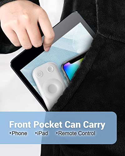 Maxesla 140 X 180 Coperta con Maniche Donna, Coperta Indossabile Donna con 4 Pulsanti, Coperta con Maniche Uomo con Tasca, Invernali Risparmio Sui Costi di Riscaldamento, per TV e Divano, Nero