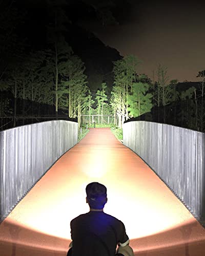 Facile da trasportare e ricaricabile: la confezione include una batteria ricaricabile da 3000 mAh. La ricarica completa richiede solo 3-5 ore (luce verde piena). È possibile caricare la torcia direttamente con un cavo USB (incluso) tramite la porta USB della torcia. La nostra potente torcia è grande ma abbastanza compatta da adattarsi in tasca, nello zaino o nella borsa di sopravvivenza.
