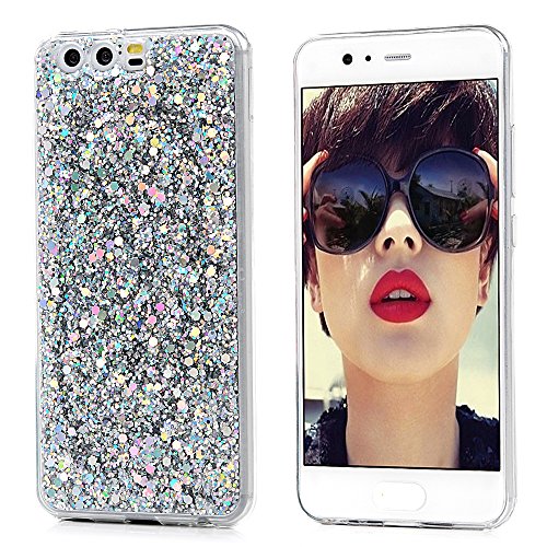MAXFE.CO Cover Huawei P10 Silicone e Bling Glitter Brillanti, Custodia Morbida TPU Flessibile Gomma Case Ultra Sottile Cassa Protettiva per P10 5.1 Pollici - Argento