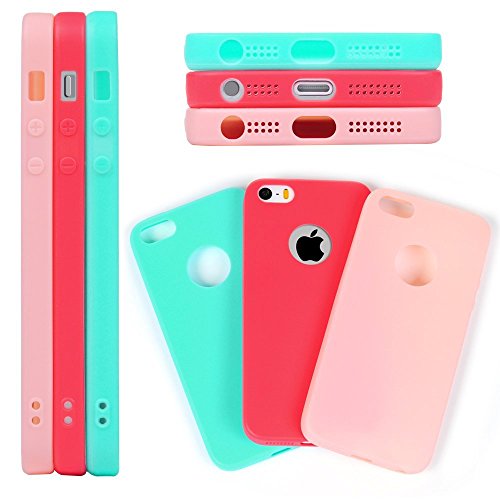 MAXFE.CO 3x Cover iPhone 5S Silicone, iPhone SE Custodia Morbido TPU Flessibile Gomma Opaco Case Antiscivolo Satinato Ultra Sottile Cassa Protettiva per iPhone 5 / 5S iPhone SE - Rosa, Rosso, Verde