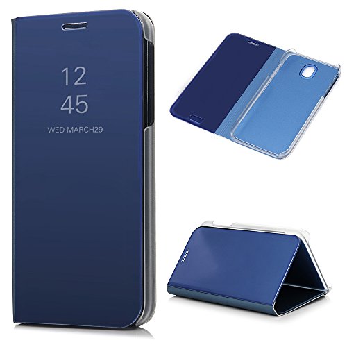 MAXFE.CO Cover per Samsung Galaxy J5 2017 Flip Folio Wallet a Specchio, Custodia Glaxy J5 2017 a Libro PC&PU Silicone Case Rigida con Portafoglio e Funzione Supporto, Chiusura Magnetica - Blu