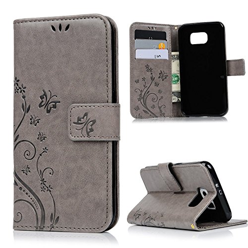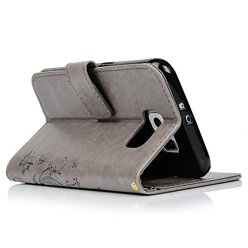 MAXFE.CO - Flip cover in PU con scomparti per carte di credito, funzione supporto e chiusura magnetica, per Samsung Galaxy S6, Grigio, Samsung Galaxy S6