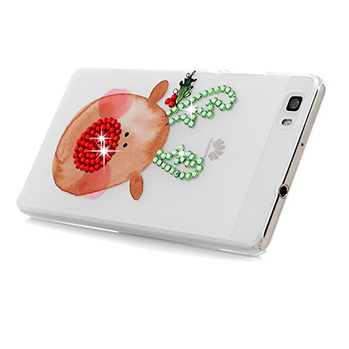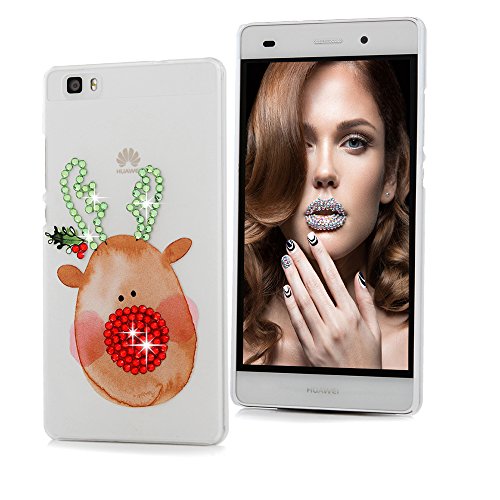 MAXFE.CO Custodia Huawei P8 Lite,Trasparente Fatto a Mano 3D Glitter Bling Strass Cover Rigida Plastica Hard Case Cristallo Diamante Plastica PC Duro Protettiva - Alce (Cartone Animato)