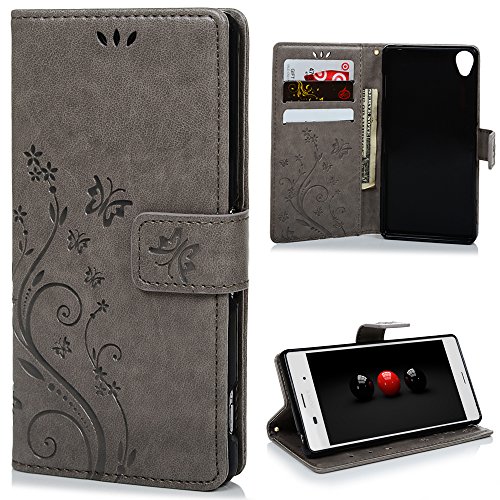MAXFE.CO - Custodia in pelle PU per Sony Xperia Z3, con funzione leggio, scomparto per carte di credito e chiusura magnetica, 1 tappo antipolvere e 1 pennino capacitivo