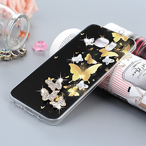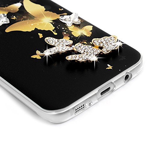 MAXFE.CO Custodia per Samsung Galaxy S7 Edge,Fatto a Mano 3D Glitter Bling Strass Cover Rigida Plastica Hard Trasparente Case Cristallo Diamante Plastica PC Duro Protettiva - Farfalla