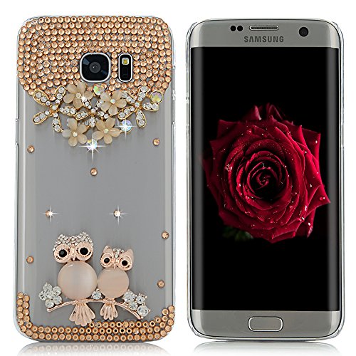MAXFE.CO Custodia per Samsung Galaxy S7 Edge, Trasparente 3D Fatto a mano Glitter Bling Cover Rigida Plastica Hard Case Cristallo Diamante Plastica PC Duro Protettiva - gufo