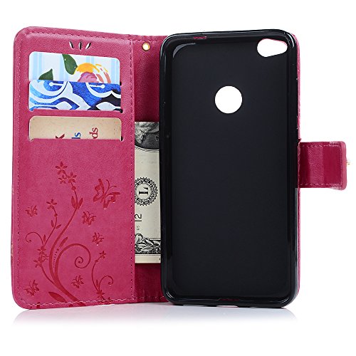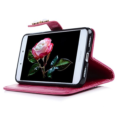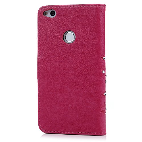MAXFE.CO Huawei P8 Lite 2017 Cover Flip Pelle Stampata Folio Wallet PU e Bling Glitter Brillanti Custodia Morbido Case Libro Leather Protettiva Portafoglio, ID Slot, Chiusura Magnetica - Rosa Rossa