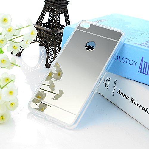 MAXFE.CO Huawei P8 Lite 2017 Cover a Specchio Custodia Sottile ANTIURTO Rigida Acrillico con i Bordi Silicone TPU Bumper Case Prottetiva per Huawei P8 Lite 2017 - Argento