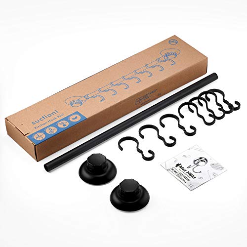 MaxHold Porta Utensili da Cucina con 7 Ganci - Sistema di Vuoto - Portasciugamani con Ventose - Niente Fori Necessari - Acciaio Inossidabile Nessuna Ruggine - Utilizzabile in Bagno e Cucina