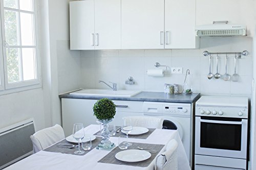 MaxHold Porta Utensili da Cucina con 7 Ganci - Sistema di Vuoto - Portasciugamani con Ventose - Niente Fori Necessari - Acciaio Inossidabile Nessuna Ruggine - Utilizzabile in Bagno e Cucina