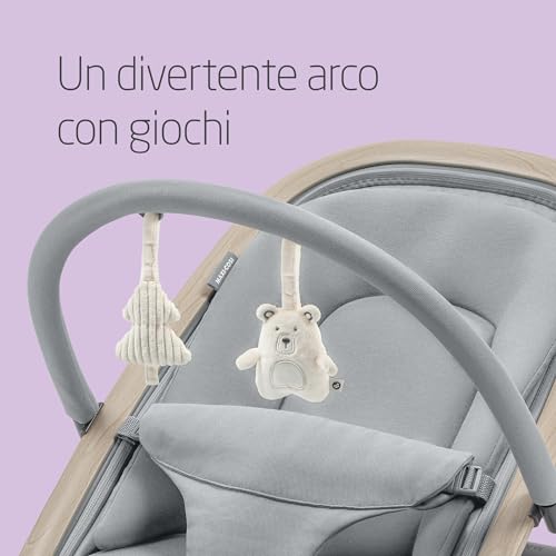 Maxi-Cosi Kori Sdraietta Neonati Ergonomica in Tessuto con Arco Gioco, 0-2 anni, 15 kg, Sdraietta a Dondolo con Movimento Naturale, Reclinabile e Pieghevole, Chiusura Compatta, Beyond Grey