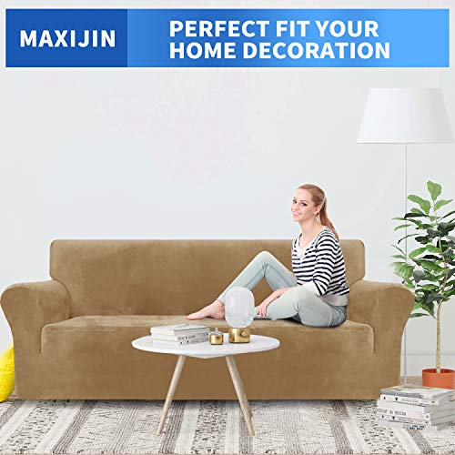MAXIJIN Copridivano in velluto spesso Copridivano antiscivolo a 3 posti super elasticizzato per cani Cat Pet Friendly 1 pezzo Protezione per mobili Copridivano peluche (3 posto, Cammello)