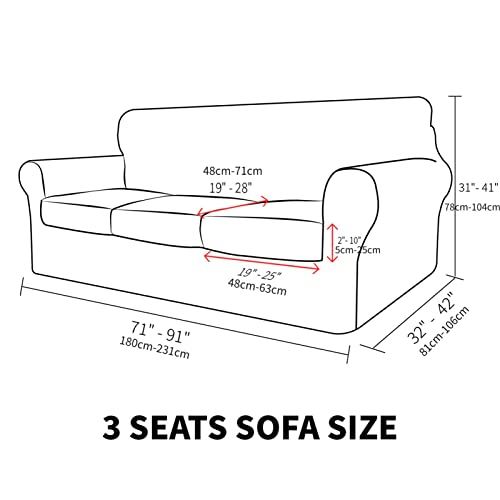 4 PEZZI INCLUSI - La fodera per divano elasticizzata premium MAXIJIN è progettata in esclusiva per quei divani con cuscini individuali, che include una fodera per divano e tre fodere per cuscino, una fodera per divano magica Must-have per 3 posti! Poiché la fodera dei cuscini del sedile è separata, si adatterà meglio e non cambierà l'aspetto del tuo divano, sembra una fodera antiscivolo personalizzata. E il bordo elastico sul fondo aiuta a fissare la copertura e garantisce il 100% ANTISCIVOLO