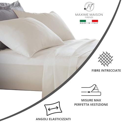 MAXIME MAISON Firenze - Set Lenzuola Letto Singolo Cotone 100% Completo con Federe Cuscini Tinta Unita, Prodotto Made in Italy Anallergico e Antiacaro (Colore Panna, Singole 1 Piazza)