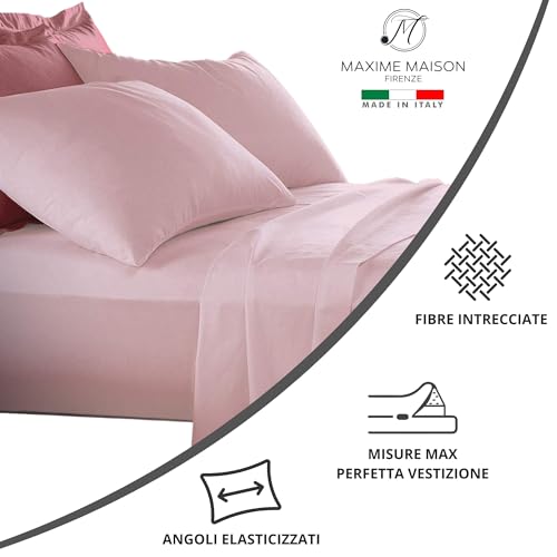 Maxime Maison Firenze - Set Lenzuola Letto Singolo Cotone 100% Completo con Federe Cuscini Tinta Unita, Prodotto Made in Italy Anallergico e Antiacaro (Colore Cipria, Singole 1 Piazza)