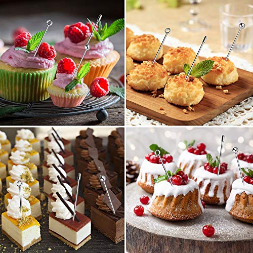 Maxin - Set di 30 stuzzicadenti da cocktail in acciaio INOX con custodia trasparente, per cocktail, barbecue, frutta e frutta (argento)