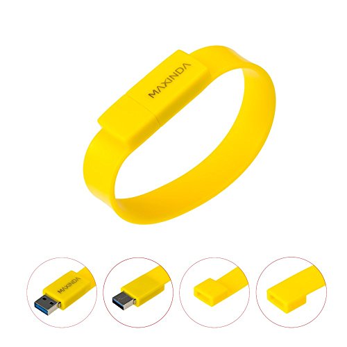MAXINDA Braccialetto chiavetta USB Flash Drive da 16GB USB 3,0 Memory Stick Pe, Giallo