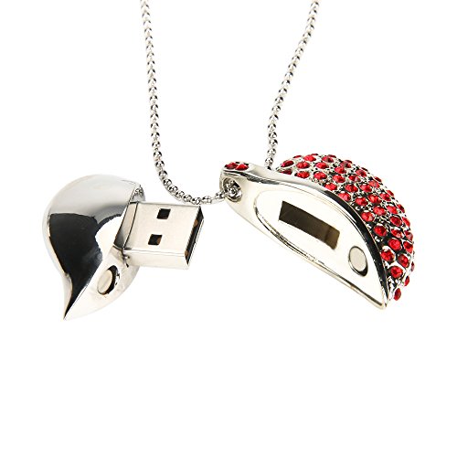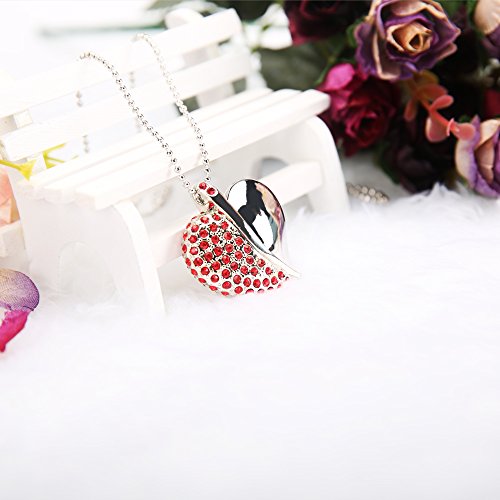 Maxinda Chiave USB 2.0 a forma di cuore con strass e collanina rosso rosso 32 go