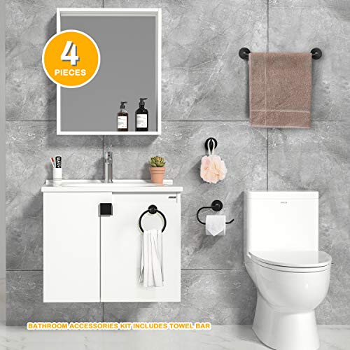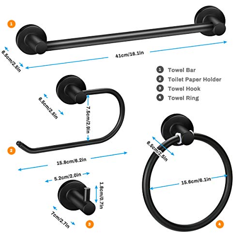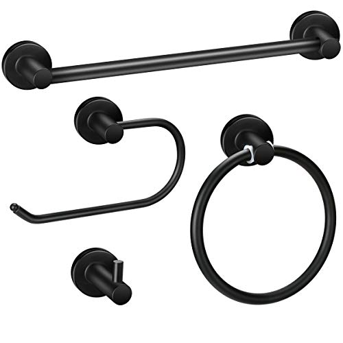 Maxjaa 4 pezzi Il kit di accessori per il bagno a parete include 304 portasciugamani in acciaio inox Portasciugamani Portasciugamani Anello porta carta igienica (Nero opaco)
