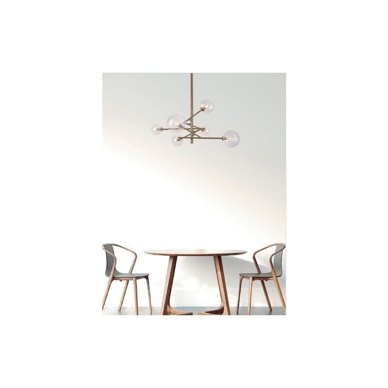 Potenza: 6 x max 40W G9 230V L: 70 cm, P: 60 cm, H: 115 cmFinitura dettagli: ottone/ottoneMateriale: metallo, vetro/metallo, vetroLampadine escluse/lampadine escluse