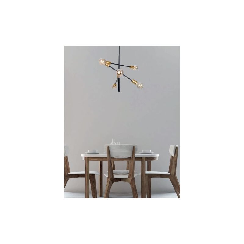 Potenza: 6 x 40 W E27 230 V Cielo/tettuccio: Ø 12 cm, H: 2,5 cm L: 52 cm, P: 52 cm, H: max 170 cm, h: 50 cm Finitura/Dettagli finitura: nero, oro/nero, oroMateriale: metallo/metalloNon contiene lampadine/lampadine escluse