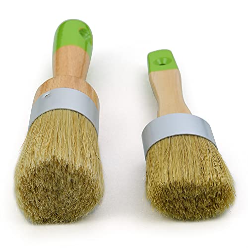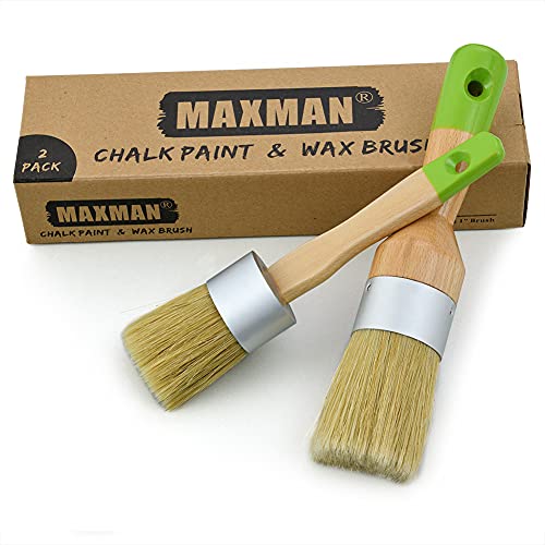 MAXMAN 2-in-1 - Pennello rotondo per gesso e cera per pittura mobili, fatto a mano con setole naturali, pittura o cera, cera morbida scura e trasparente, per pittura al latte, decorazione per la casa