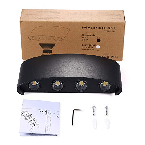 Maxmer 8W LED Lampada da Parete Interno Applique Esterno Impermeabile IP65 Lampada da Muro Moderna Alluminio per Scale Balcone Soggiorno Nero (Bianco caldo)