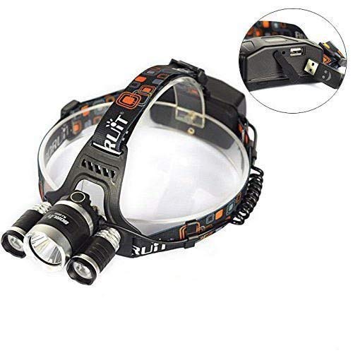 Lampada da testa Boruit 3*CREE XM-L2 (lampadine importate da USA), con 4 modalità e massima luminosità 6000 lumen, distanza d'illiminazione: 500 metri.