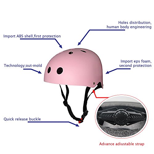 Maxnon - Casco di sicurezza regolabile per bambini e ragazzi, per bici, pattini e BMX, Rosa, S