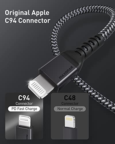 Cavo Lightning certificato MFi: cavo Maxonar da USB C a Lightning con certificazione MFi (realizzato per iPhone, iPad, iPod). Dispone di chip intelligente originale per garantire una compatibilità completa con il sistema iOS, nessun messaggio pop-up. Protezione integrata da sovratensione, protezione batteria e funzioni di riconoscimento automatico del chip proteggono bene il tuo iPhone/iPad dai danni.