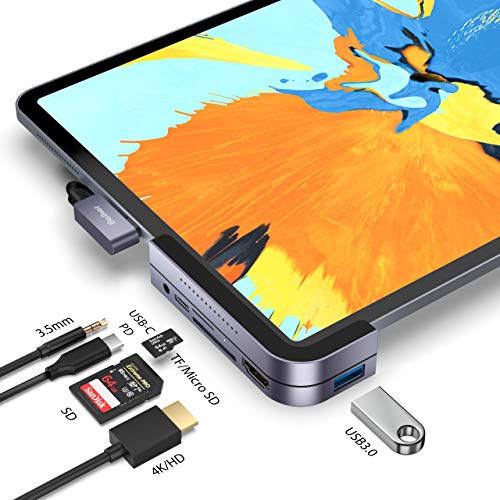 Maxonar USB C HUB per iPad PRO 2018 2019 2020 Tipo C 6 in 1 Hub con USB 3.0 (5Gb / s), USB C, 4K HDMI, SD/Micro-SD, Jack Audio da 3,5 mm Compatibile con iPad PRO 2018/2019/2020