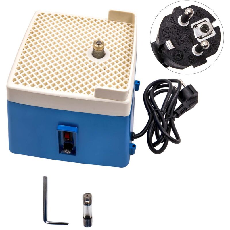 Description: This New Design Machine widely used for glass processing arts and decoration. It come with small size and portable and suitable for grinding glass,ceramics and other hard and brittle material. Features: Dents switch design, avoid the leakage Easy operation,automatic stained, stable and reliable performance For hard brittle materials such as glass, ceramics and so on. Grinding variety of geometric shapes: plane, curve, rounded corners, slope, etc. Specification: Voltage: 220VAC Working table size: 165x165 mm Machine size: 195x195x160 mm Machine weight: 2.35kg Color: Blue Plug type:EU Plug Grinding wheel installation: 1. Before installation of grinding wheel, topped with lubricant, engine shaft grinding wheels need to apply a layer of lubricant inside. 2. The grinding wheel mounted to the engine shaft, the fixed screw position higher than the engine shaft. The position of the grinding wheel on the axle must be at least 1/8" diamond part above the operating table. 3. Fixed