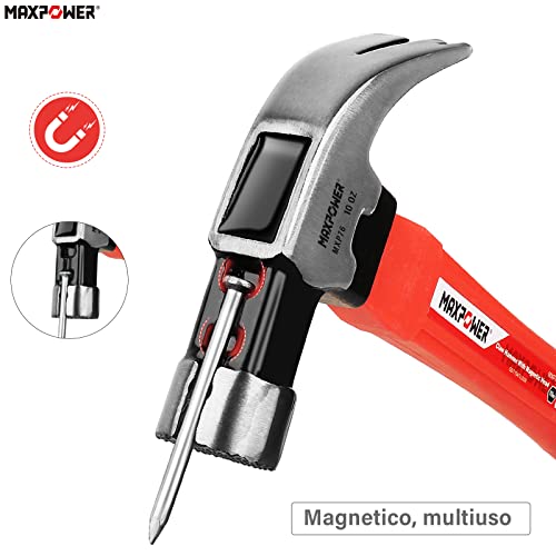 MAXPOWER 280gr Martello da Carpentiere Magnetico Martello Professionale Carpentiere 10oz Martello Levachiodi