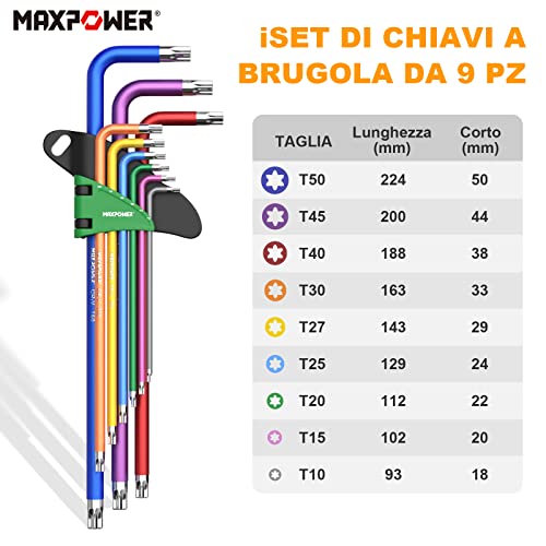 MaxPower 2 pezzi Set di Chiavi a Brugola con Testa a Sfera 1.5mm-10mm/ Chiavi Torx con Foro T10-T50 Chiavi Esagonali