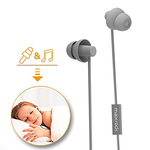 MAXROCK Auricolari comodi Auricolari in silicone morbidi unici con microfono, isolamento acustico Tappi per le orecchie Jack da 3,5 mm per Sleeper laterale Compatibile con Hua wei Samsung LG iPhone Nokia Sony (Grigio)
