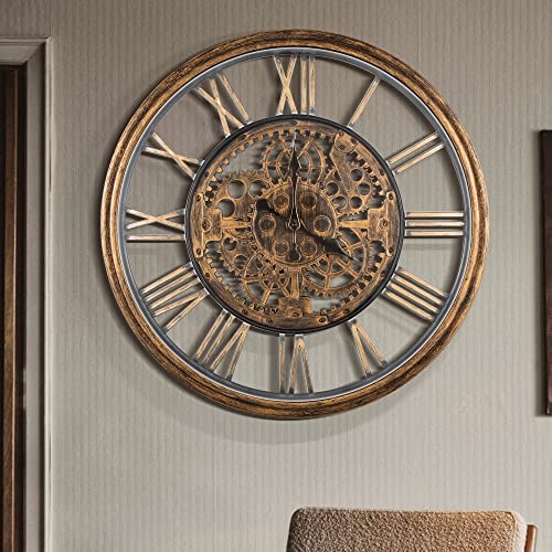 Maxstar Orologio Parete Grande Vintage Rustico - Grande Orologio Da Parete 60 cm Metallo Numeri Romani Vetro Cavo Silenzioso Legno Cucina Soggiorno All'aperto Decorazione
