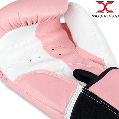 MAXSTRENGTH - Guanti in pelle da donna per allenamento, colore rosa, 6, 8, 12, 14, 16 oz, da boxe, kickboxing, punch bag, muay thai, 16oz