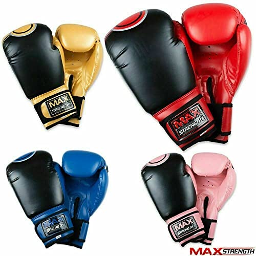 MAXSTRENGTH Guantoni da boxe MMA Punching Training Sparring, Kickboxing, combattimento Focus Punch Mitts per sacco da boxe pesante Pro Fight Muay Thai (10 oz, rosso/nero)