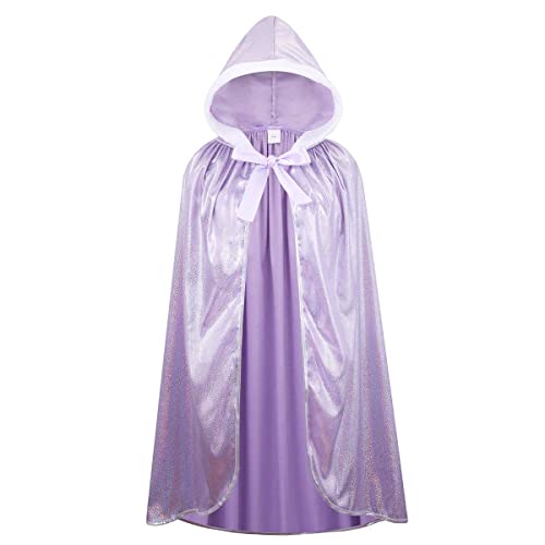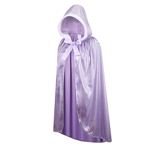 MaxToonrain Mantella da principessa con cappuccio per ragazze e personaggi delle fiabe travestimento per adulti per Halloween e Natale, compleanno, include orecchini, corona e anello (viola, 120 cm)