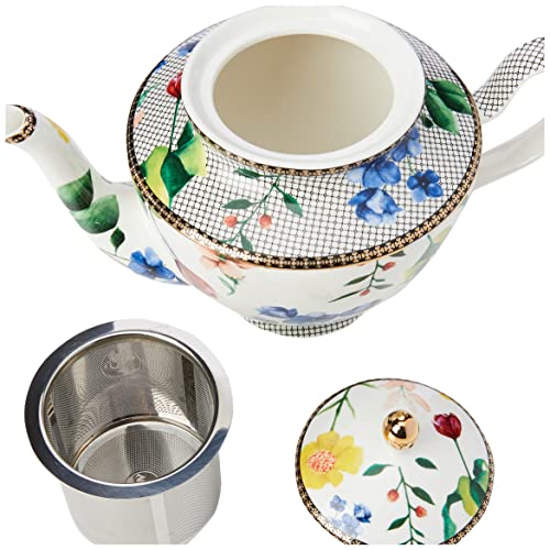 Fiori Contessa: Questa grande teiera con infusori per tè sfuso è rifinita in bianco puro e decorata con vivaci fiori primaverili