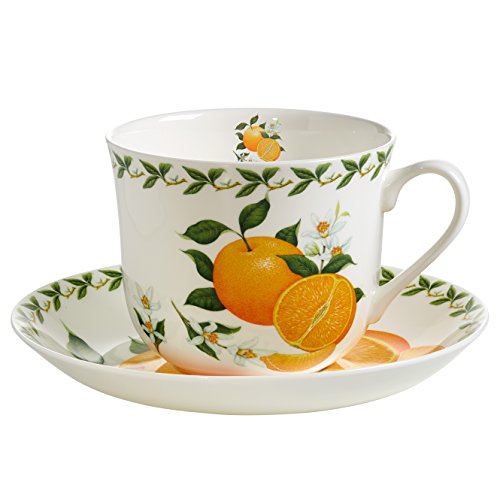 Maxwell & Williams pb8110 - Tazza per la Colazione Orchard Fruits con piattino Arancione, Confezione Regalo, Porcellana, Multicolore