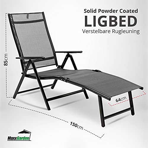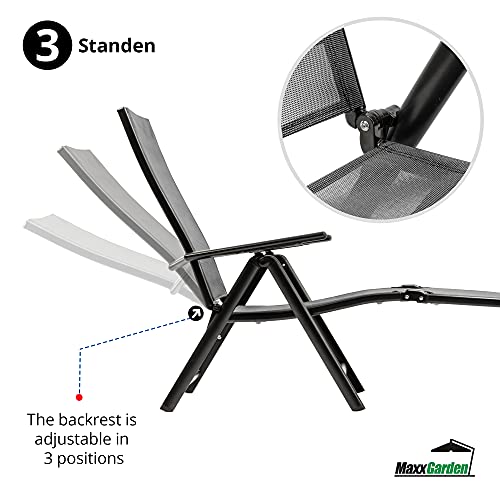 MaxxGarden - Sedia a sdraio pieghevole, sdraio pieghevole, sedia da campeggio, 190 x 58 x 85 cm (argento)