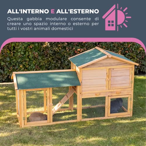 FACILE DA PULIRE - Il legno robusto resiste alle intemperie. Il tetto rivestito da pannelli in bitume idrofugo ripara gli animali dalla pioggia e dal vento. Nella parte superiore, la base è costituita da un cassetto scorrevole in metallo semplice e rapido da pulire.