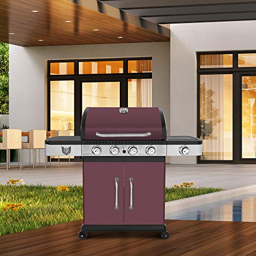Maxxus BBQ Chief - Barbecue a gas con 4 bruciatori in acciaio INOX, potenza di riscaldamento 10,8 kW, griglia in ghisa, bruciatore laterale 2,5 kW
