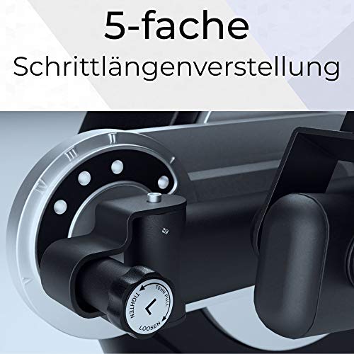 Cross trainer / trainer ellittico con lunghezza passo regolabile per diverse dimensioni del corpo.