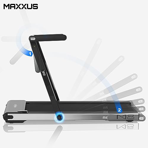 MAXXUS Tapis roulant M8 - Elettrico, 2 CV, 12 km/h, pieghevole, battistrada 125 x 45 cm, con Bluetooth, LCD, controllo app, ruote, supporto per tablet, rosso/argento/bronzo - Attrezzo fitness per
