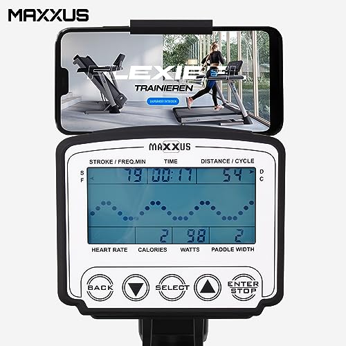MAXXUS Vogatore AirRow - Resistenza Aria 9 Livelli 150 kg con Display LCD Ergonomico Sedile Cuscinetto a Sfera Supporto Smartphone - Macchina Vogatore Rower Attrezzatura Fitness Casa