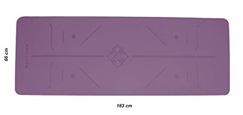 MAXYOGA Tappetino Yoga con Linea Sistema di allineamento - Yoga Mat 183 x 66 x 0,6 cm - Materiale TPE Ecologico, Antiscivolo. Tappetino da yoga palestra fitness pilates ginnastica. Viola