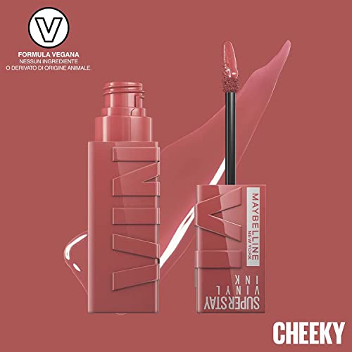 Maybelline New York Tinta Labbra a Lunga Tenuta Superstay Vinyl Ink, Per un Effetto Vinilico fino a 16H, Finish Luminoso e Senza Sbavature, Formula Vegana, Tonalità: 35 CHEEKY
