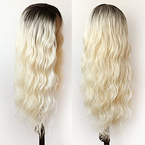 Maycaur Long Loose Curly synthetic Lace Front Wigs Black Blonde colore capelli per donne 180% Density ondulate parrucca con capelli naturali Baby
